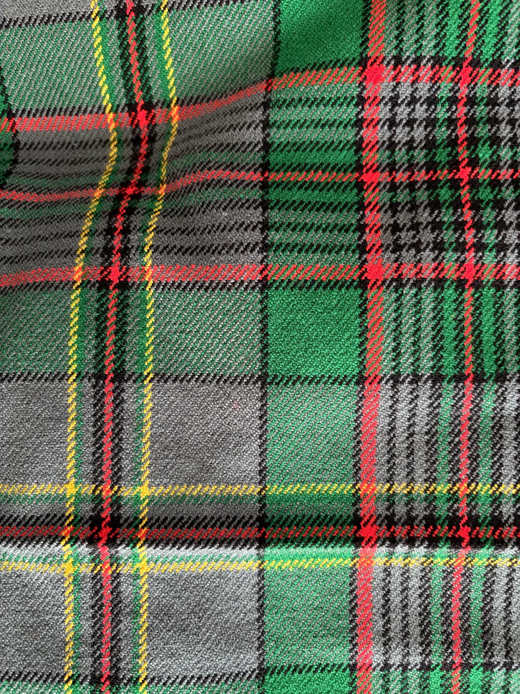 The Craig tartan features a harmonious blend of green, gray, black, yellow, and red hues. The green symbolizes the lush Scottish landscapes, while the gray represents balance and tradition. Black lines add depth and contrast, with yellow and red accents providing a vibrant touch to the pattern. Crafted from 100% acrylic wool, this tartan offers both durability and comfort, making it an excellent choice for traditional garments such as kilts, scarves, and other Scottish attire, cherished by those who appreciate Scotland's vibrant heritage.